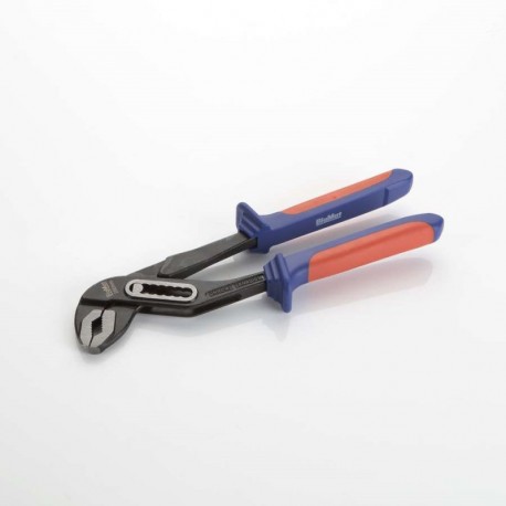 - Tenacilla para tubo y tuercas, cremallera de ajuste con múltiples posiciones, botón de preajuste y mordazas de gran grosor dentadas, agarre y manipulación preciso y sin posibilidad de resbalar la pieza.