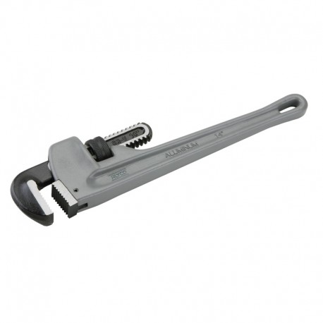 - Llave grifa (Stillson) para tubos reforzada fabricada en Aluminio. El mango tiene perfil de doble T, lo que le da mucha resistencia y capacidad de apriete. Este tipo de mango favorece un agarre seguro. Al ser de aluminio, es mucho más ligera y manejable.