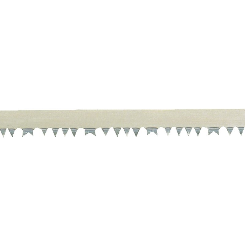 - Hoja de arco con dentado americano, para el corte de madera fresca y verde. Fabricadas en acero Especial, los dientes están templados por inducción de alta frecuencia para que duren más. Los dientes tienen una altura mayor y homogénea para aumentar su resistencia y su rendimiento. Las hojas son rígidas y consistentes, lo que permite conseguir un corte más fácil, más recto y más seguro.