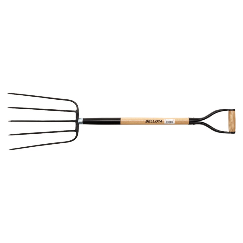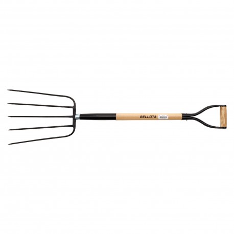 - Irrompible. Horca con 5 púas forjada en una sola pieza y fabricada en acero especial Bellota. Tratada térmicamente. Te durará toda la vida, no se rompe, no se deforma y no se desgasta. Los dientes son afilados para agarrar bien los fardos y templados en toda su longitud para aguantar mejor el peso. Están pintados para evitar la oxidación y facilitar el mantenimiento.